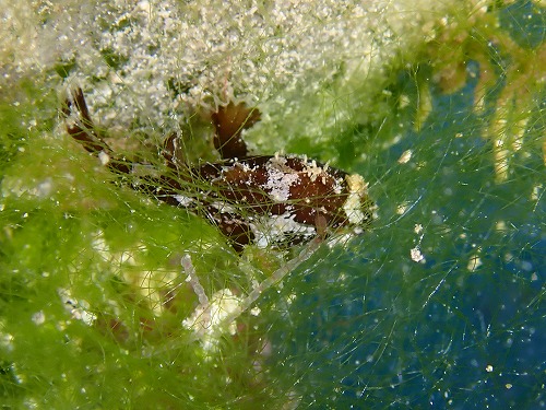 この海藻がうまくカエルアンコウを守っていて、
