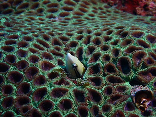 ぴとっと岩場でゆっくりしているオキゴンベ