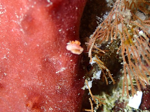 カイメンカクレエビ属の一種、ミジンベニハゼ