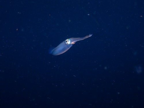 最終日のダイブでは、船の下をアオリイカが