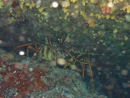 岩の隙間から「こんにちは~」のイセエビ