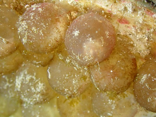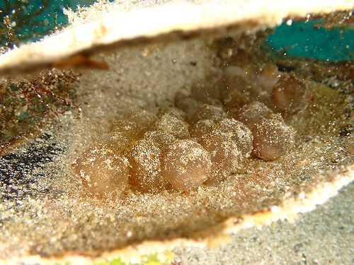 メスは卵を外敵から守るため、シャコガイの殻の内側や岩の隙間、サンゴの裏側など、見つけにくい場所に産み付けます。