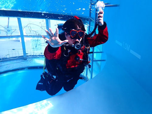 ドライスーツの給排気操作、中性浮力の微調整、姿勢の安定など、海ではつい流してしまいがちなポイントも、プールなら一つひとつ丁寧に確認できます。