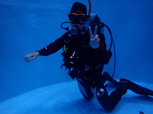 M様はドライスーツオリエンテーションと中性浮力の練習を行いました。